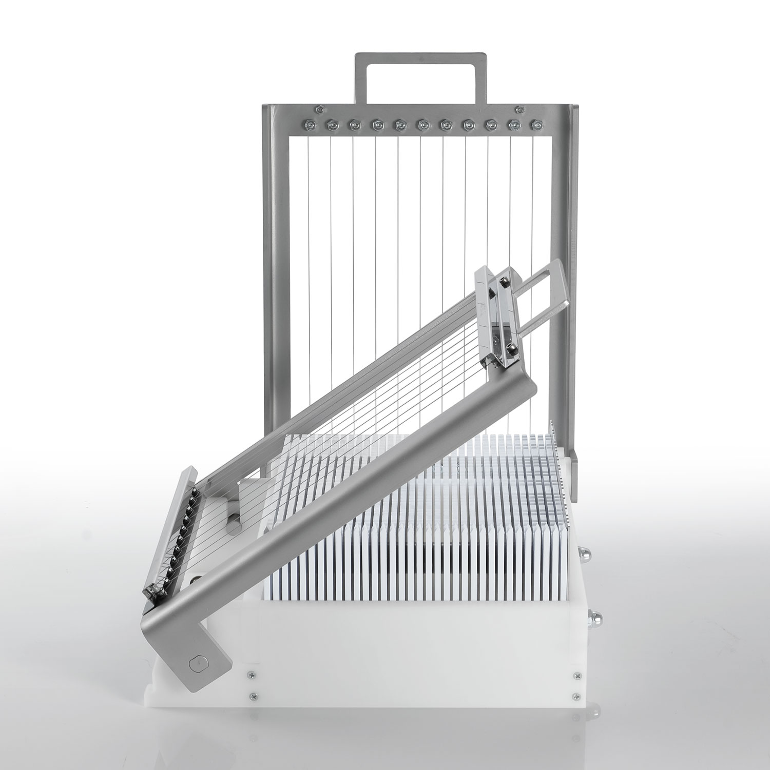 The cutting surface measures 24x25cm, so the double mini guitar is suitable for small productions and for restaurants, pastry shops and ice-cream parlours. Its small size allows easy storage in small spaces.