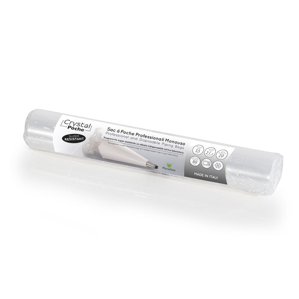Disposable piping bag made of multilayer material, resistant, flexible and hygienically safe. It is smooth on the inside, in order to ensure an easier product outflow. Moreover, the special “soft touch grip” on the outside enables a perfect hold and a very easy grip, even with wet hands.