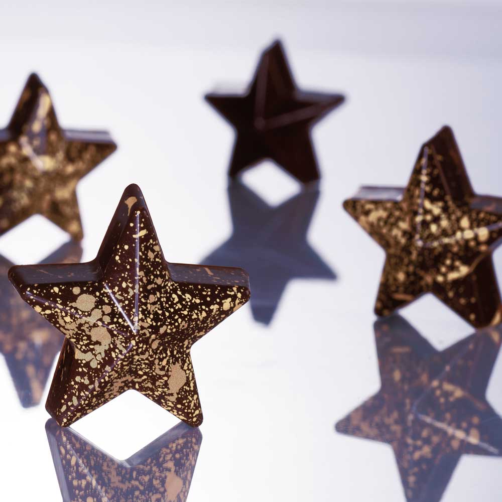Polycarbonate mould for star-shaped pralines. Perfect also for Christmas time.