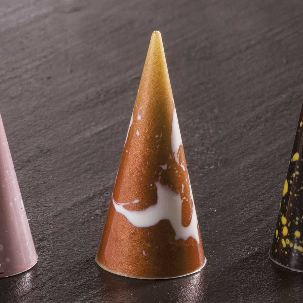 Polycarbonate "Cone" mould for pralines of the Pyramid line. Original geometric shapes for pyramidal pralines of great effect.