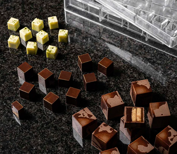 Praline moulds 275×175 mm Suitable for One Shot machines Cubo by Ramon Morató mm 17×17×17 h ~ 5 ml 45 indents