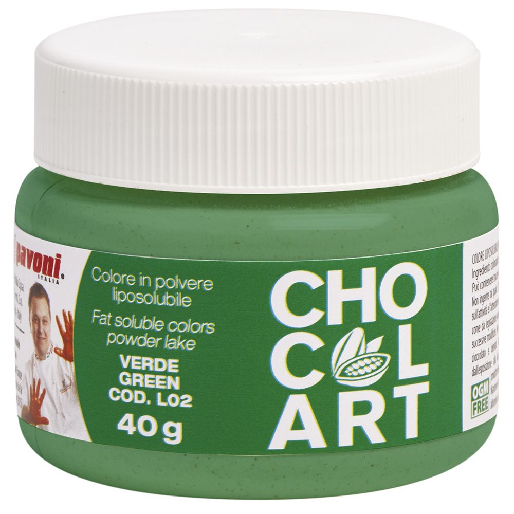 COLOR BY PAVONI ITALIA ITALY. FSSAI APPROVED Liposoluble lacquers colors CHOCOLART New line of original colours; high-intensity lacquers powder to be dissolved in the cocoa butter.Color: Green