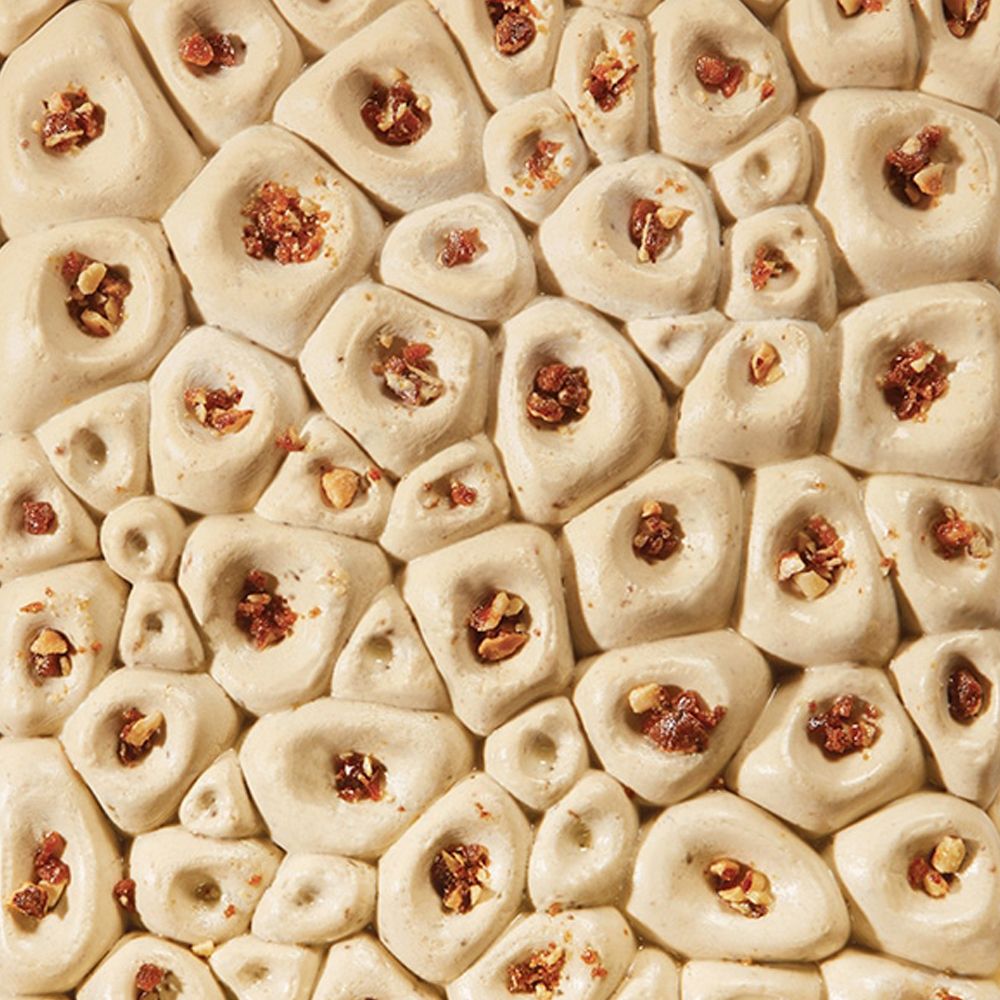 Silicone mould to create original, interesting textures on pans of icecream. A fantastic eye-catcher for your windows. Suitable for gelato pans 360x250 mm. How can you use the mould? With every type of creamy product, like hazelnut or pistachio cream, with a fruit glée or even directly with gelato, to create a perfect moulding. Cool down in the blast chiller to pull the product out of the mould. Decorate the top witha delicate velvet effect, a glaze or just leave it natural.