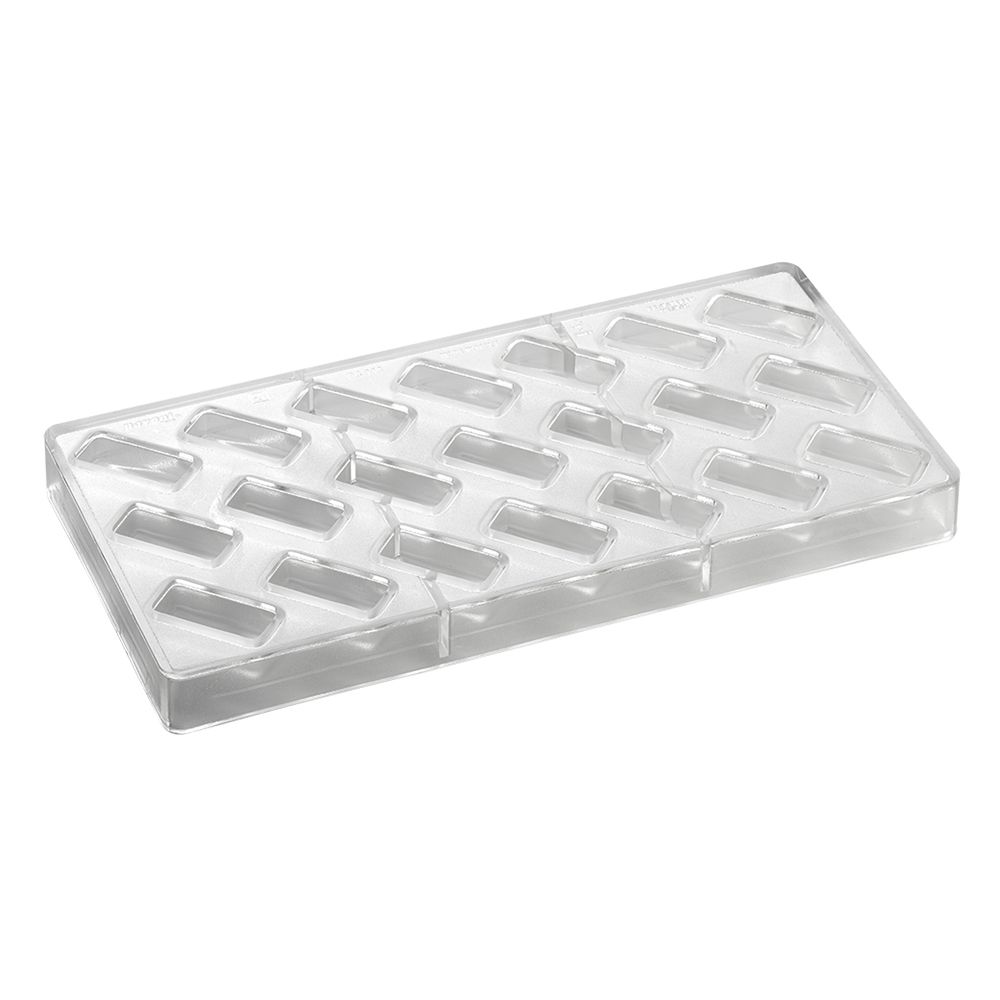 The ARTISANAL pralines moulds are an original innovation for the chocolate world. A full range designed to create a product with an artisanal “touch” with all the benefit of the mould: speed, performance and the opportunity of a soft filling. Smooth rectangular