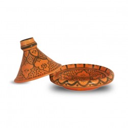 CERAMIC TAGINE POT PRINTED 8" ORANGE