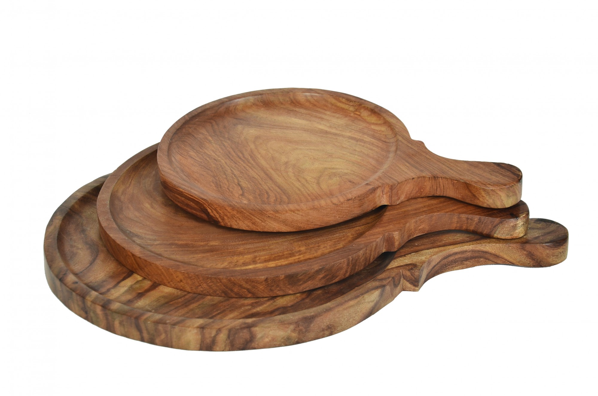 WOODEN PIZZA PLATE ROUND WITH HANDLE