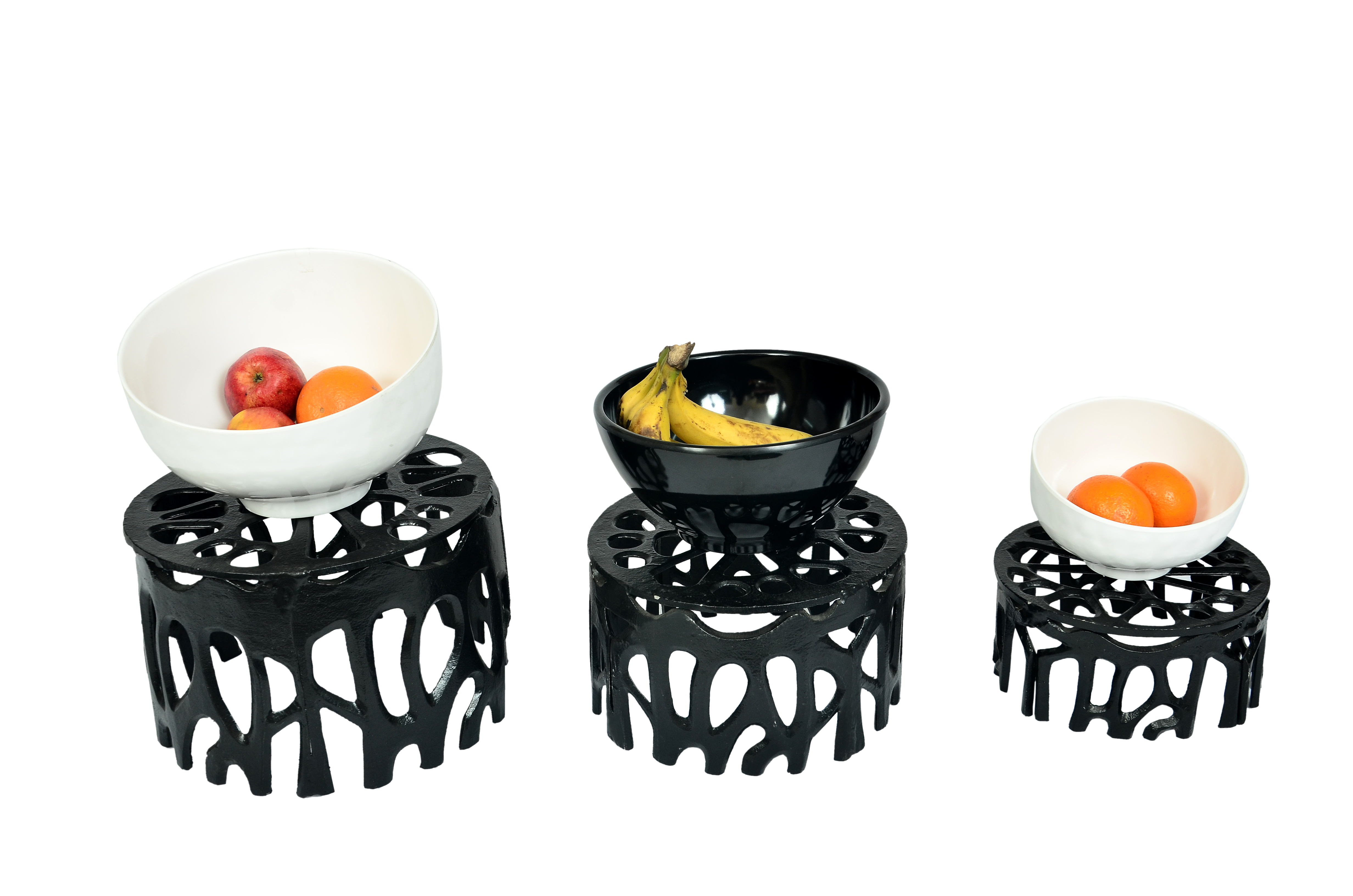 WROUGHT IRON BUFFET RISERS ROUND BLACK SET OF 3 PCS